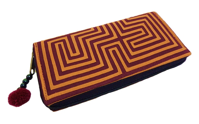 NAMB2 モン族アップリケのファスナー付き収納長財布(BrOr/迷路柄)