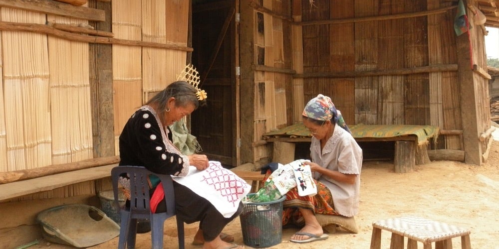 *トップの写真は、ラオス北部のモン族の村です。こうした山岳地域の小さな村々で、今でも手しごとが受け継がれています。