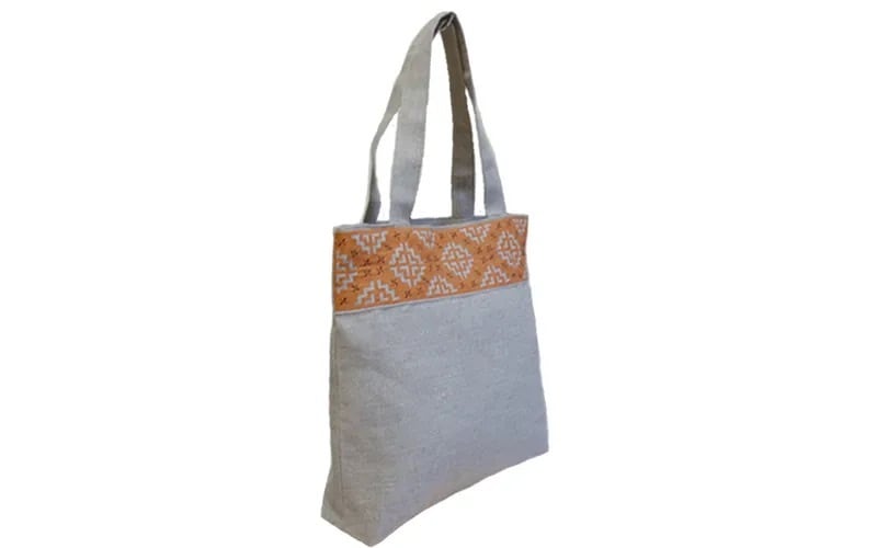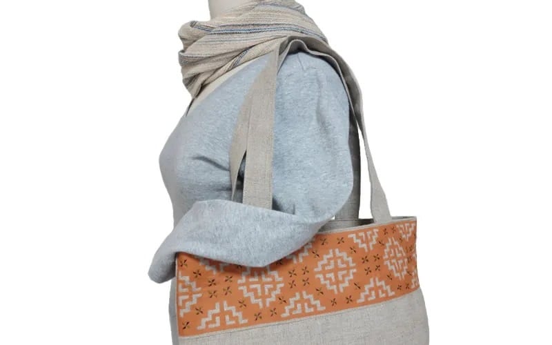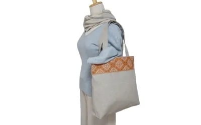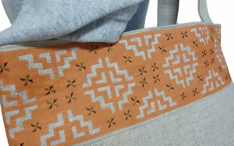 口部分に、モン(Hmong)族のリバースアップリケがほどこされた肩掛けトートバッグです。