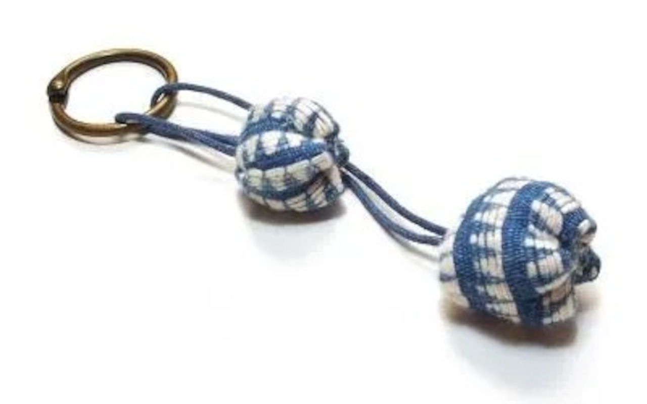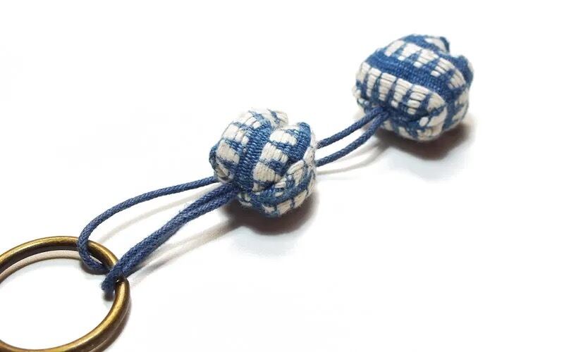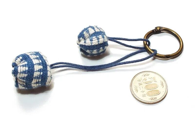 BLKH5-15 手織り布のぼんぼんキーホルダー(BlW)