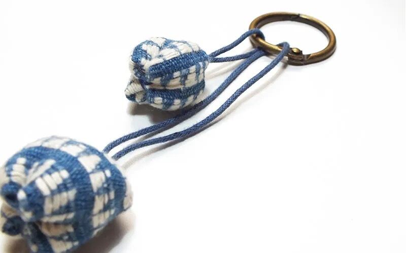 カレン族の手織り布をつかったお花のつぼみのようなかわいらしいぼんぼんキーホルダーです。