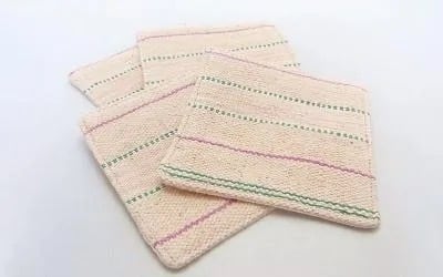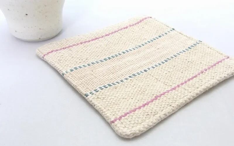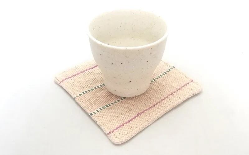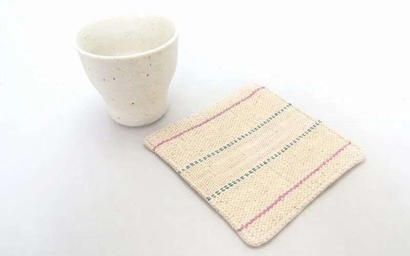 カレン族の手織り布を使ったコースターです。裏面は、生成りの無地の生地です。