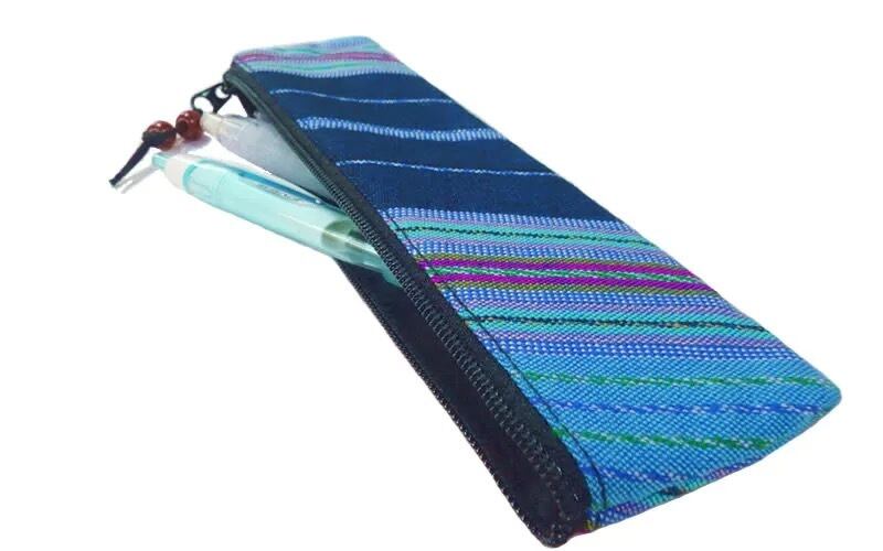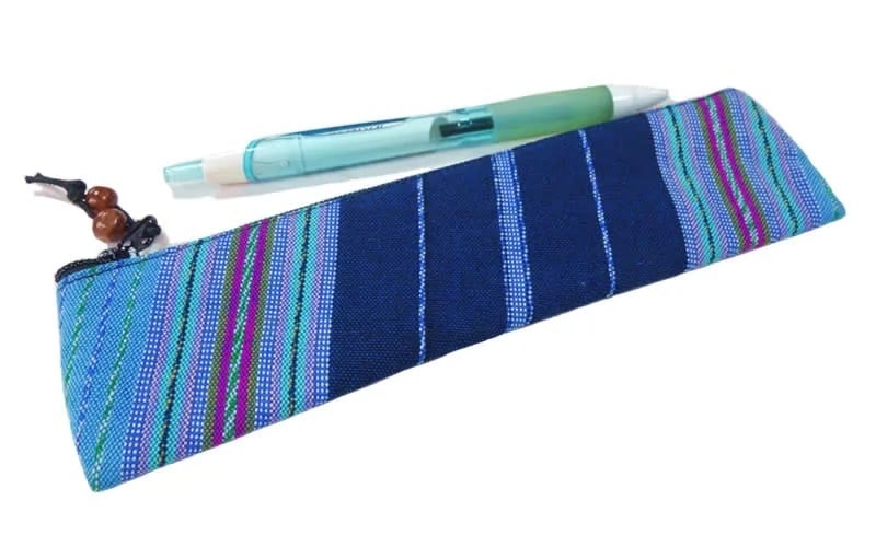 カレン手織り布のミニペンケース_マチなし(BlPp) NAPE4-2