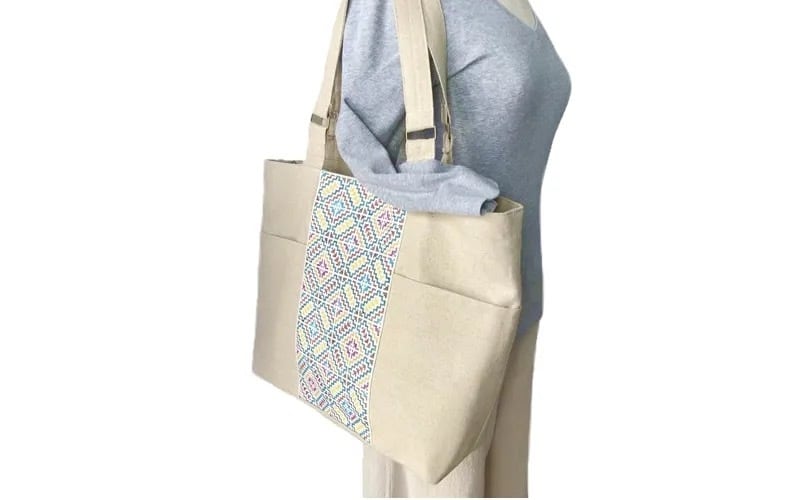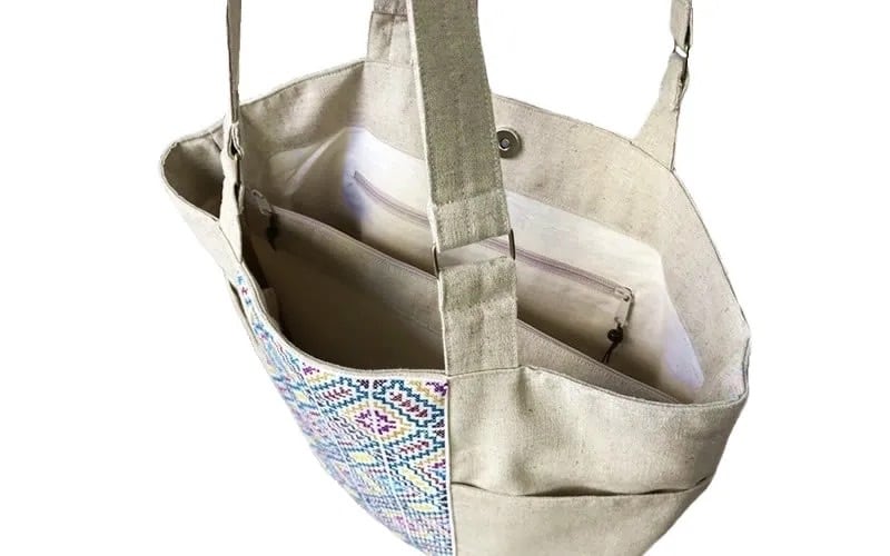 バッグ前面にモン(Hmong)族の刺繍がほどこされたトートバッグです。