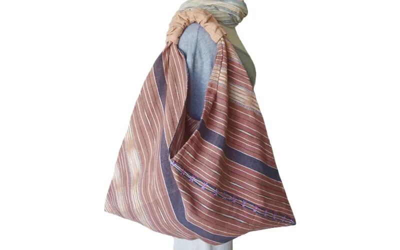 カレン手織り布の三角トートバッグ(RBr) BLTB5-1