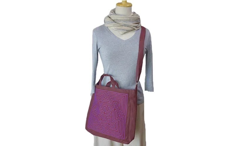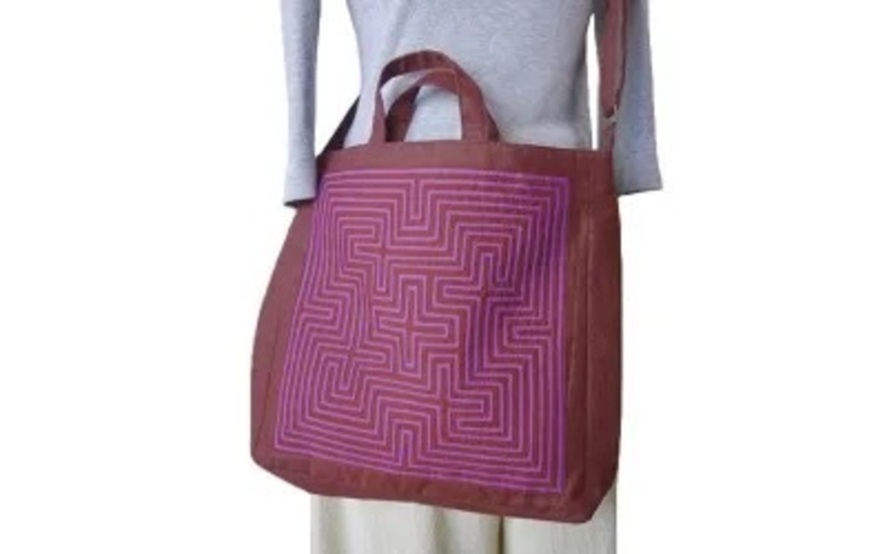 モン(Hmong)族の人たちが得意とするリバースアップリケをつかった2Wayタイプの大きめのショルダーバッグです。