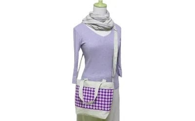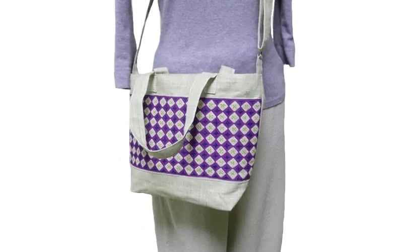 手提げトートとしてだけでなく、ショルダー紐もついているので、斜め掛けしても使えます。