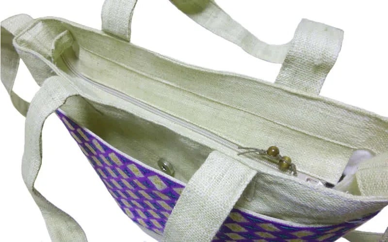 生成りの布は、今では貴重なモン(Hmong)族の手紡ぎ手織りの天然麻布をつかっています。