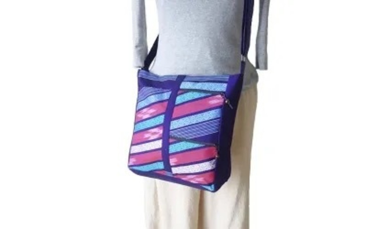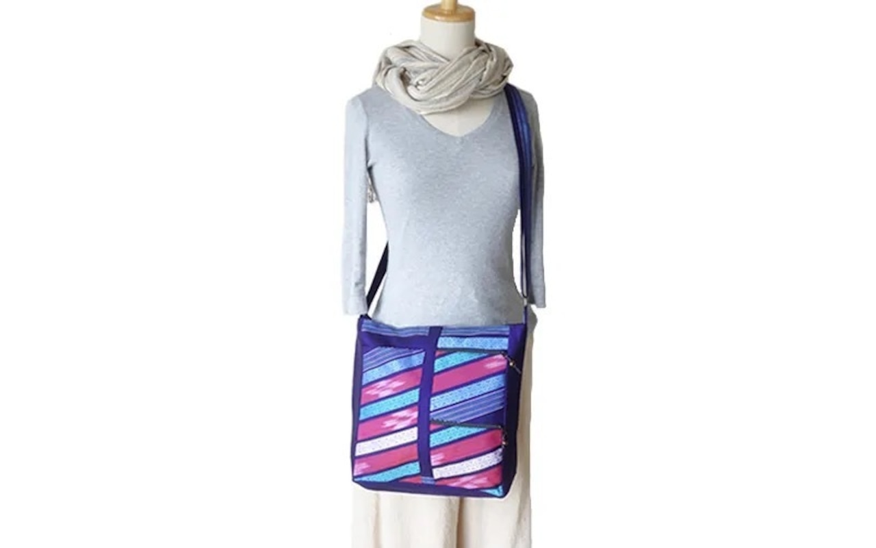 NGSB6‐3 カレン手織り布のポケットいっぱいショルダー Lサイズ(PrPAq)