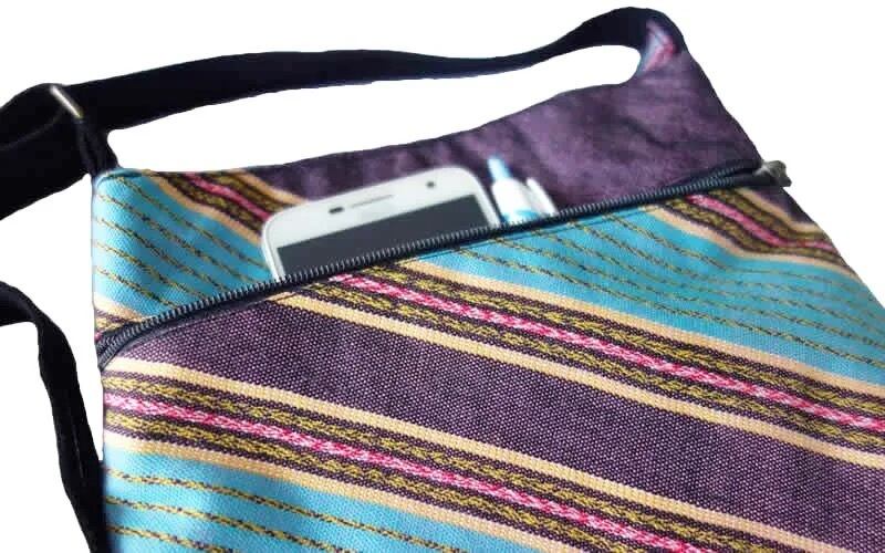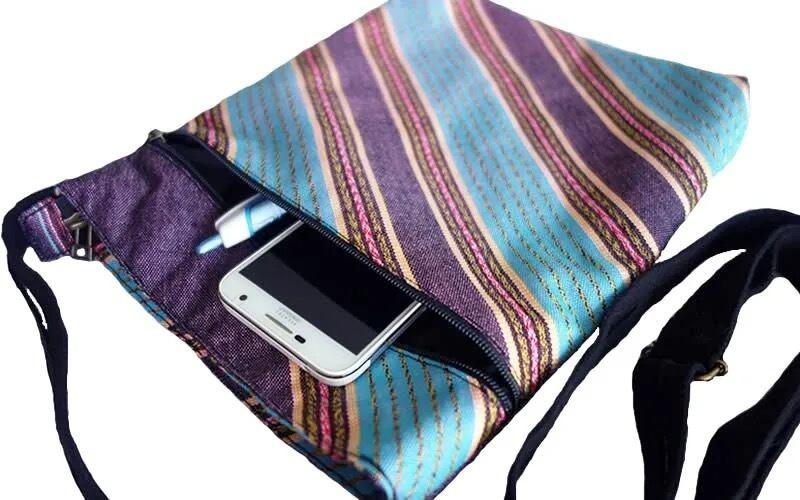 タイ北西部ミャンマー(ビルマ)国境のカレン族の村の人たちが手織りしている伝統的な民族柄の布を使ったショルダーバッグです。