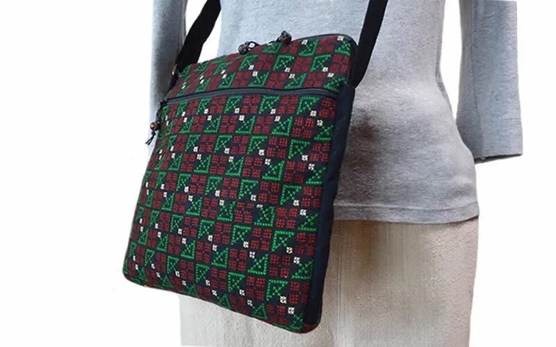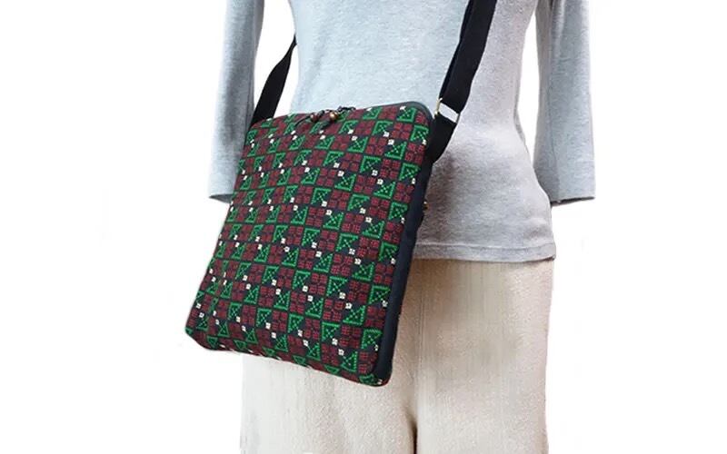 モン(Hmong)族のクロスステッチ刺繍が両面にぎっしりと施された、豪華な刺繍ショルダーバッグです。