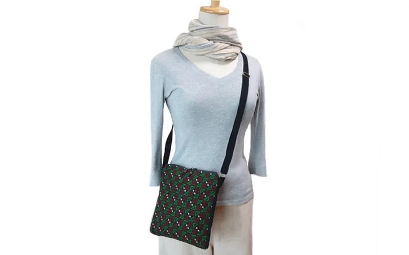 マチ付きモン刺繍ショルダー(GrR) NGSB24-2
