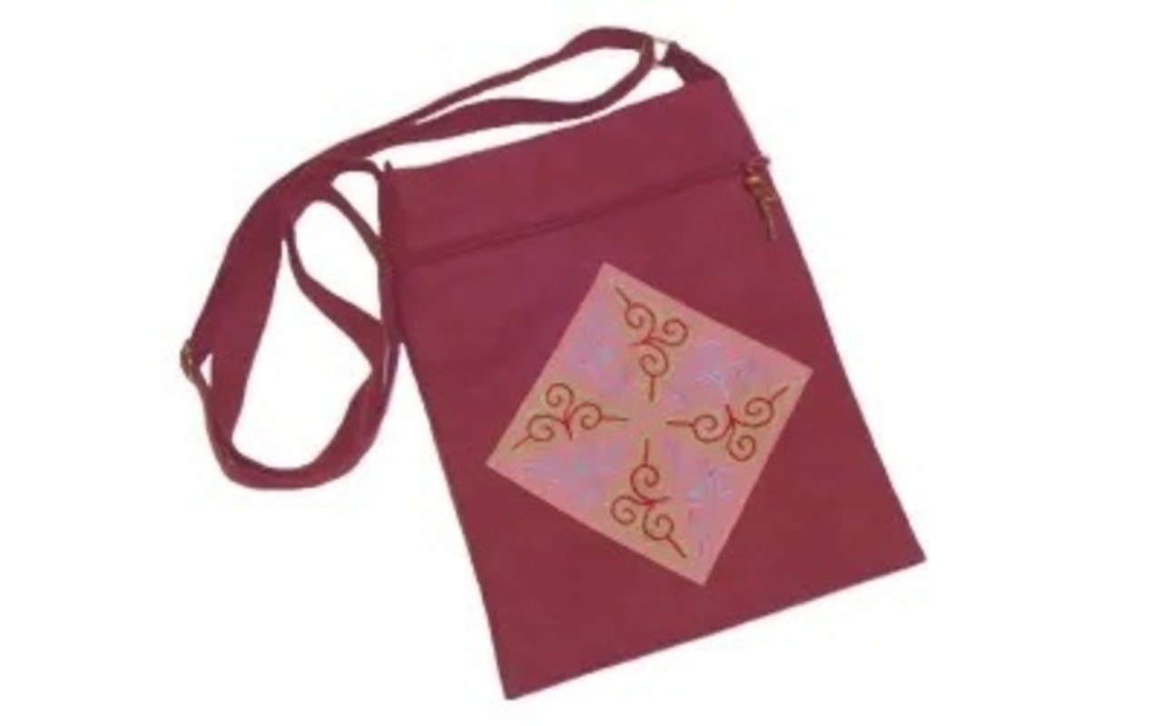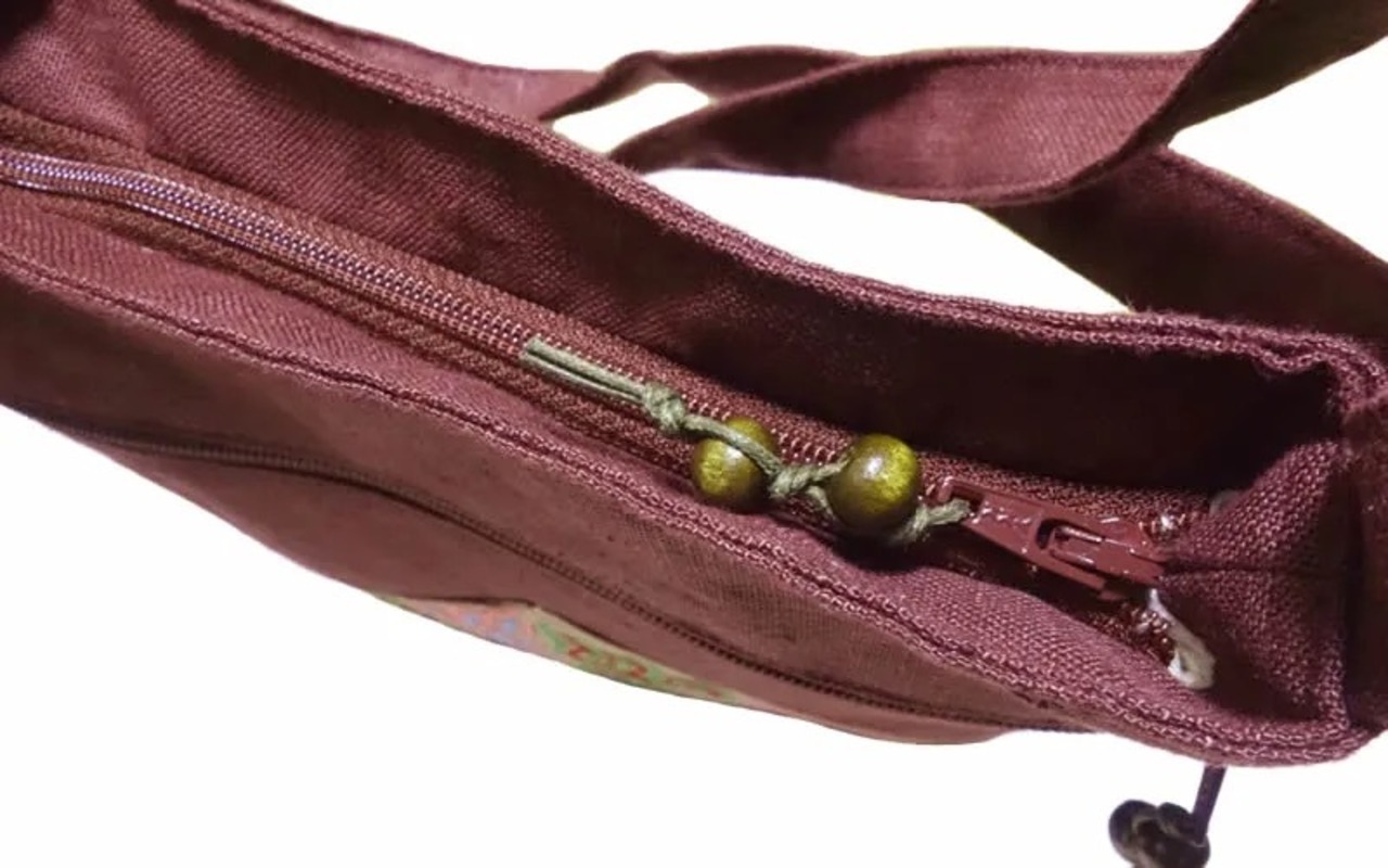 前面にチェーン刺繍のモン(Hmong)族の文様が入ったショルダーバッグです。
