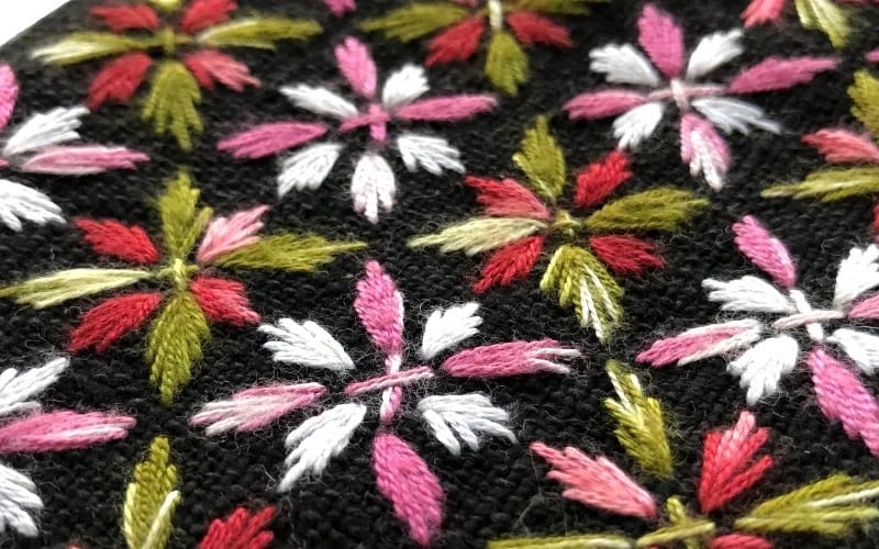 アカ族の人たちは、カラフルな布を縫い付けるアップリケを得意としていますが、最近では、こうした刺繍だけの製品も多くみられるようになってきました。