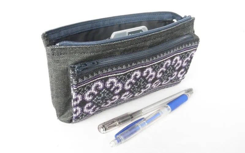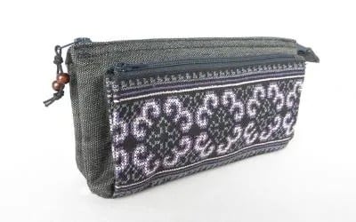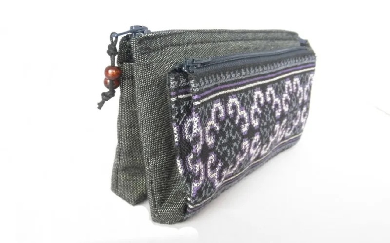 モン(Hmong)族のクロスステッチ刺繍のマチ付きポケットが前面にあり、内側にも4つのポケットがある、