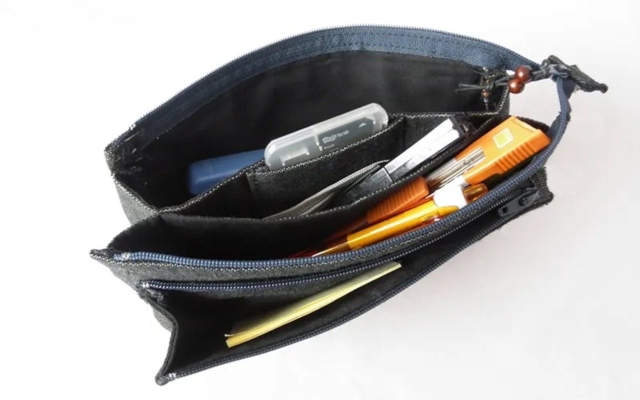 真ん中の小さなポケットは、名刺やSDメモリーカードなど、薄くて小さなものを入れておくのに重宝です。