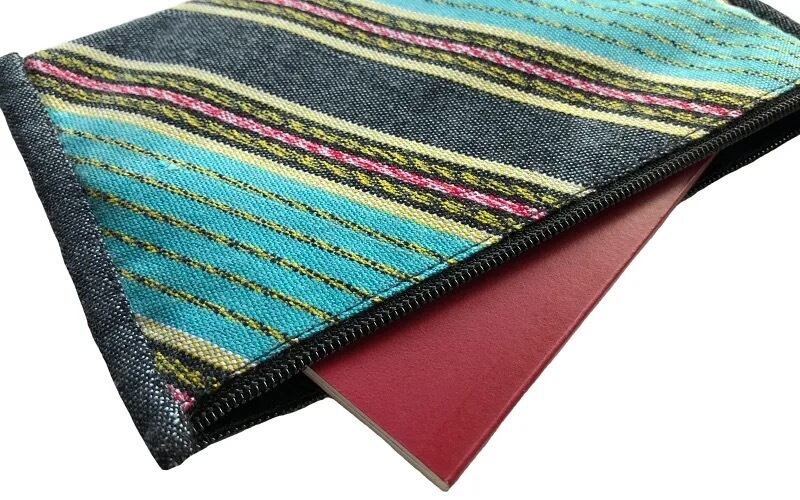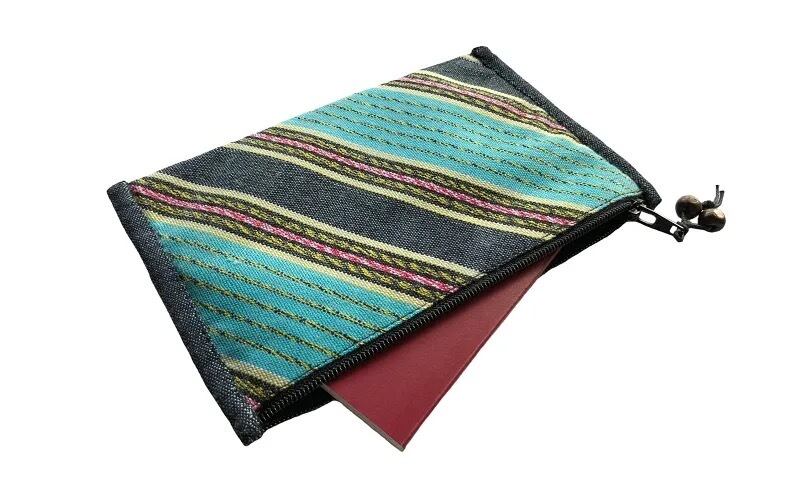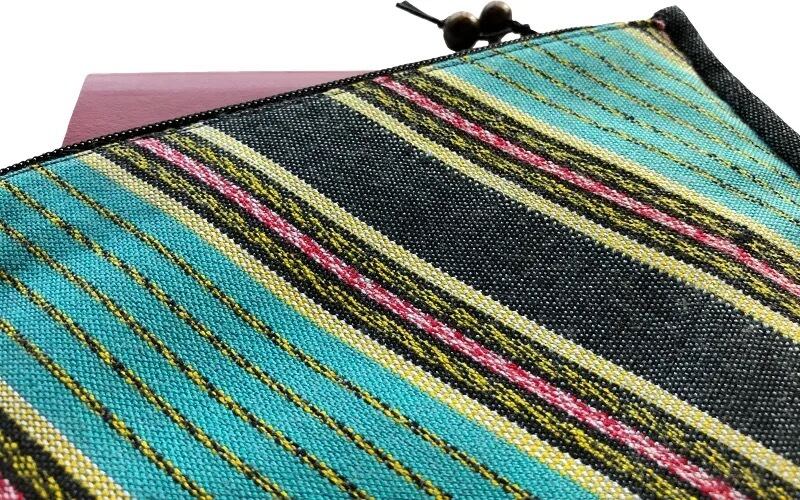 カレン族の手織り布を使った横長の薄型ポーチです。