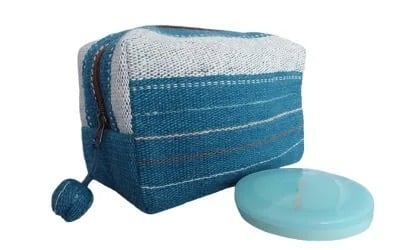 カレン手織り布のぼんぼん付き四角いポーチ(AqW) BLPR12-6