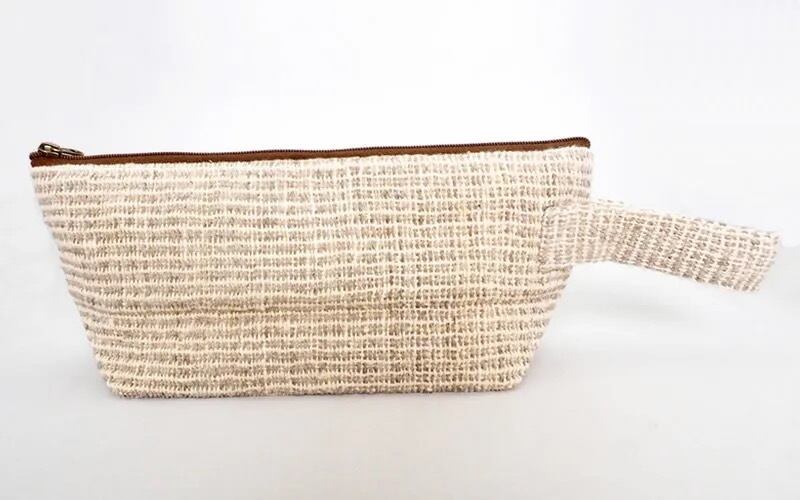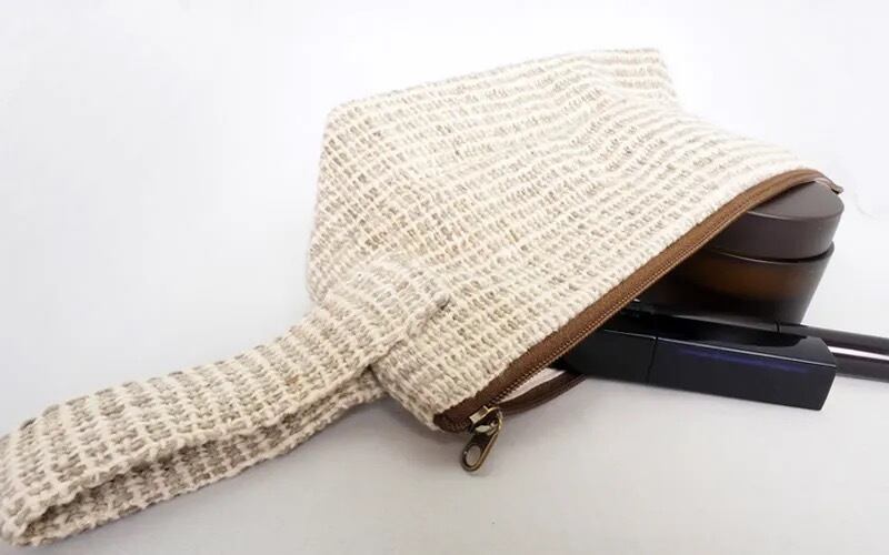 カレン手織り布の舟形ロングポーチ(WGr) BLPR13-4