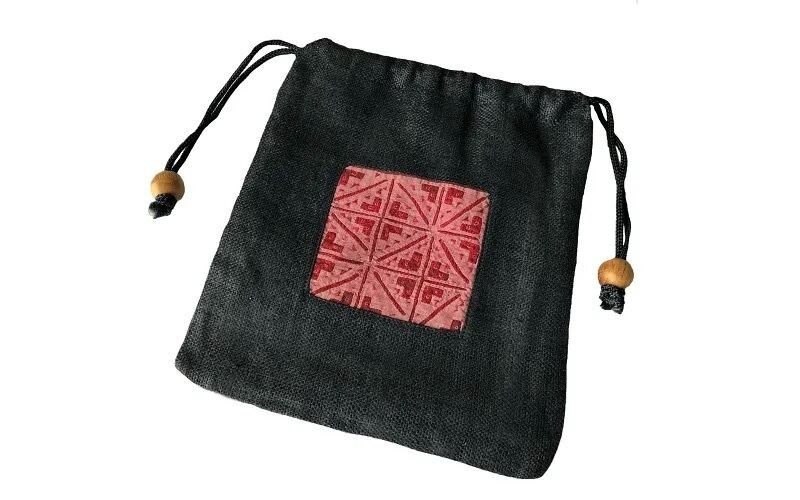 モン(Hmong)族の古布のリバースアップリケをワンポイントにした巾着です。
