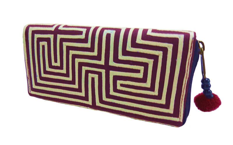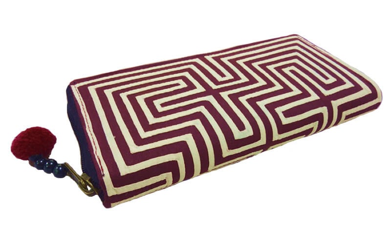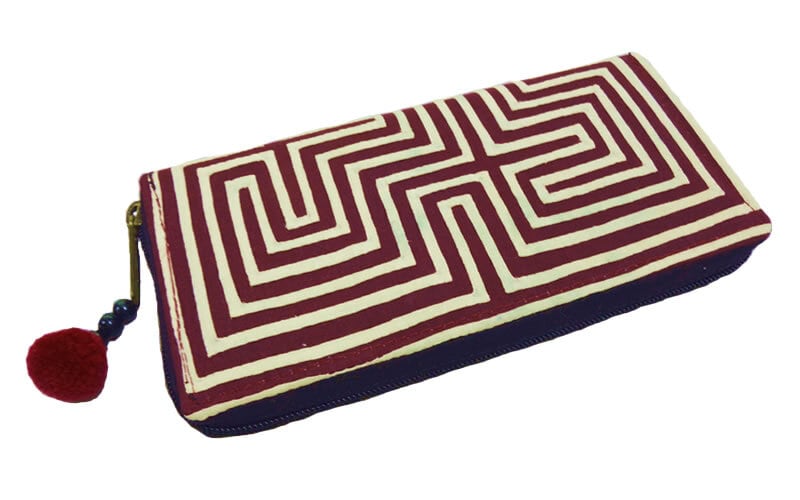 NAMB2 モン族アップリケのファスナー付き収納長財布(WHBr/迷路柄)