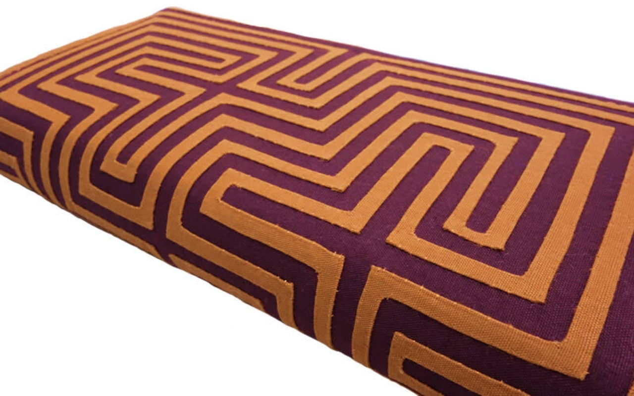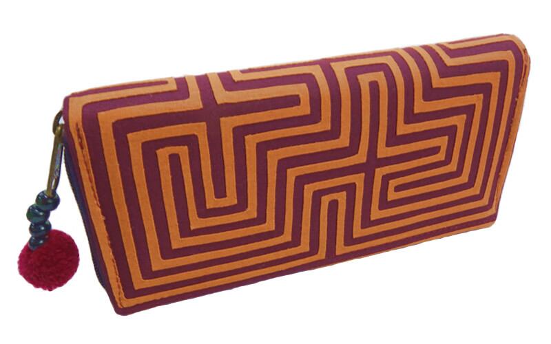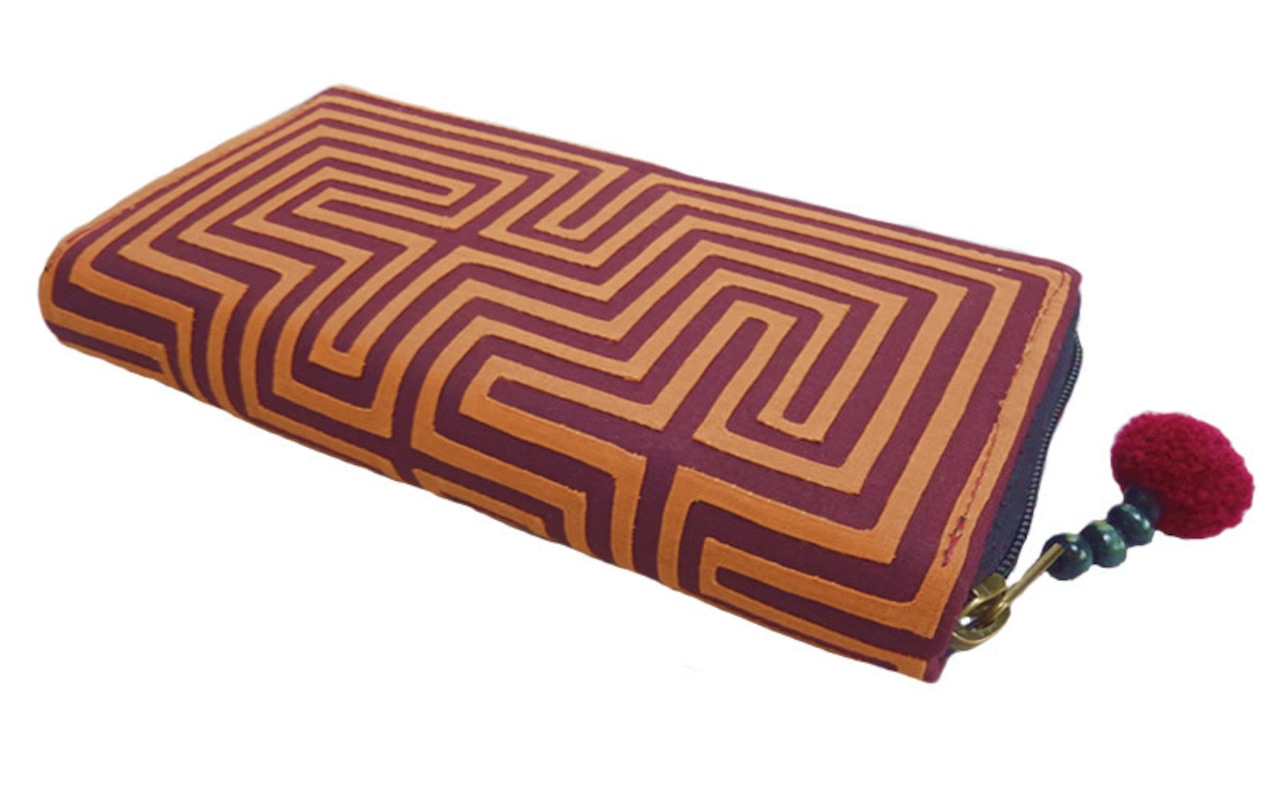 NAMB2 モン族アップリケのファスナー付き収納長財布(BrOr/迷路柄)