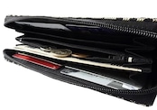 ファスナーをあけると、中にはたくさんのポケットがあり、紙幣や硬貨だけでなく、カードやレシートなども分けて入れられ、1つあると便利な収納長財布です。