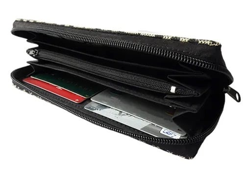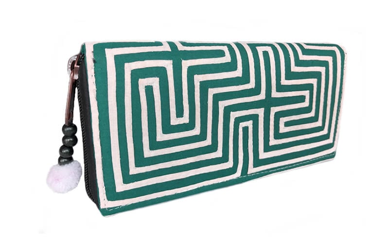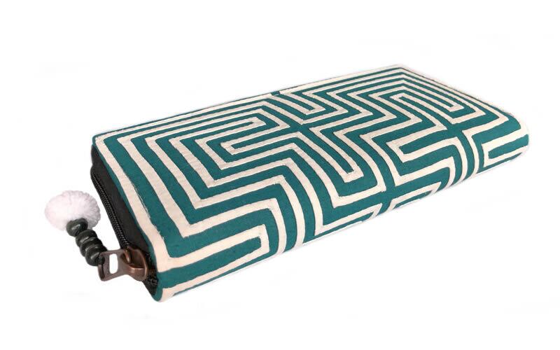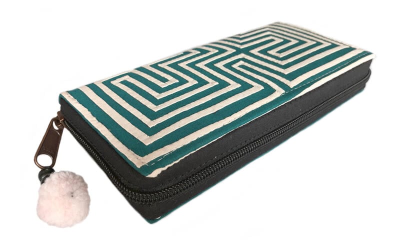 NAMB2 モン族アップリケのファスナー付き収納長財布(HWBGr/迷路柄)