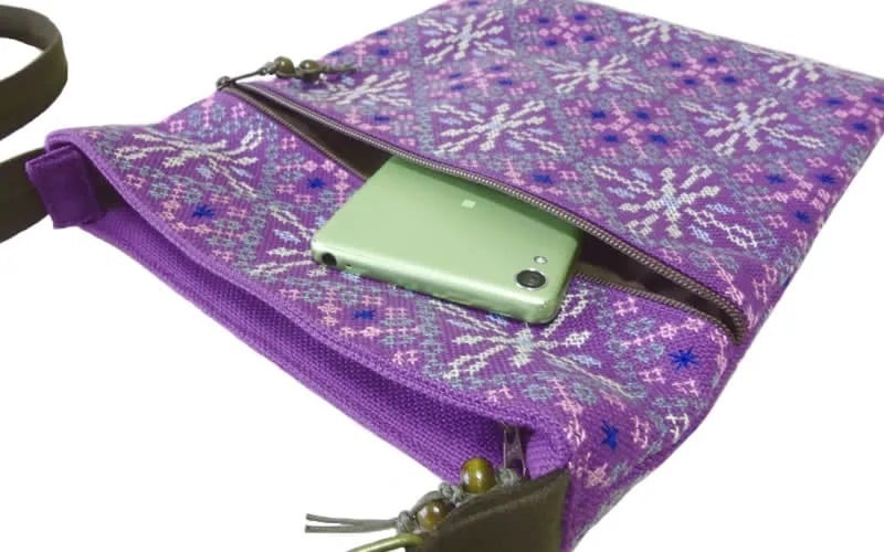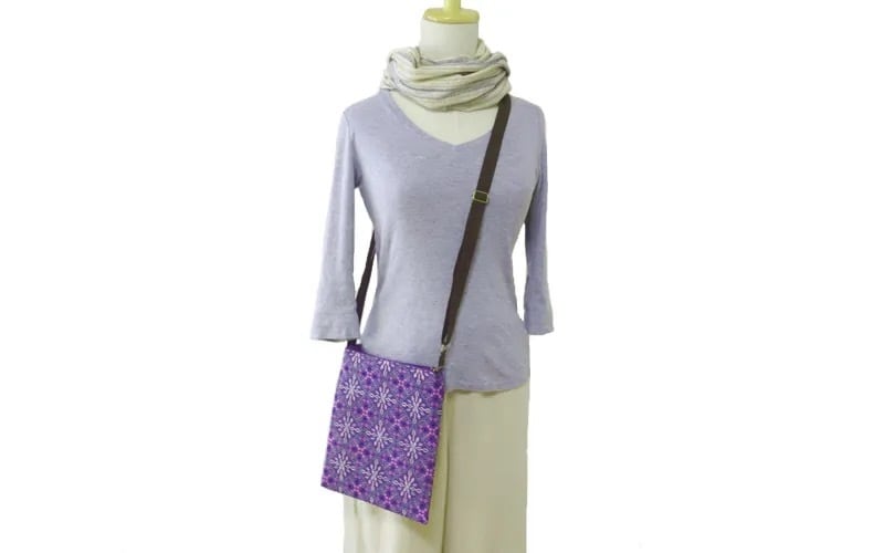 *刺繍してある地の布はパープル、ファスナー、裏地、肩紐はすべて茶色です。