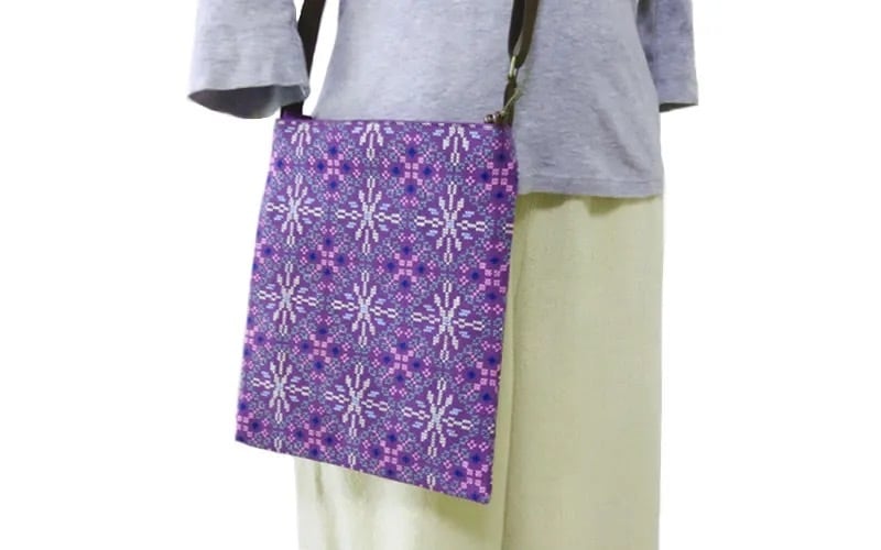 モン(Hmong)族のクロスステッチ刺繍が両面にぎっしりと施された、豪華な刺繍ショルダーバッグです。