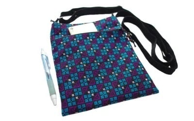 *刺繍してある地の布はパープル、ファスナー、裏地、肩紐はすべて茶色です。