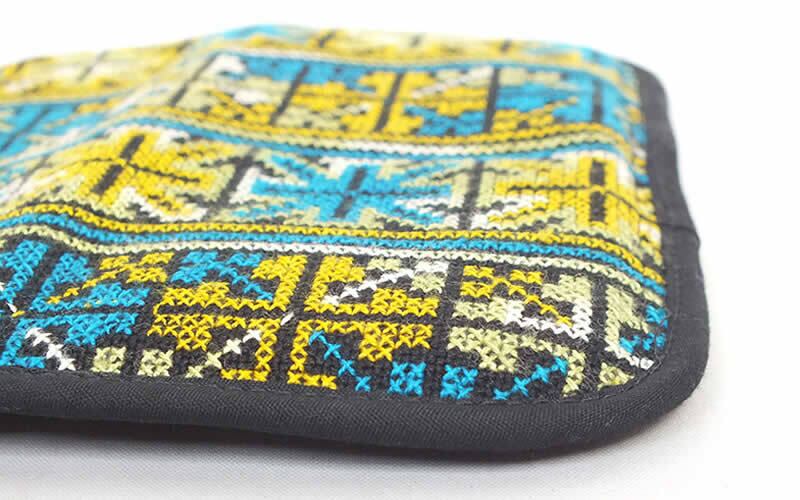 ミェン族のクロスステッチ刺繍が施されたクッション入りケースです。