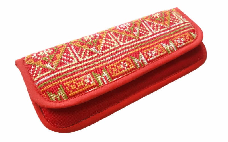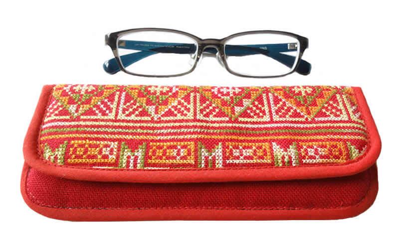 ミェン族のクロスステッチ刺繍が施されたクッション入りケースです。