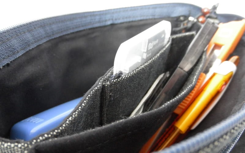 真ん中の小さなポケットは、名刺やSDメモリーカードなど、薄くて小さなものを入れておくのに重宝です。