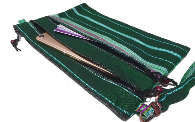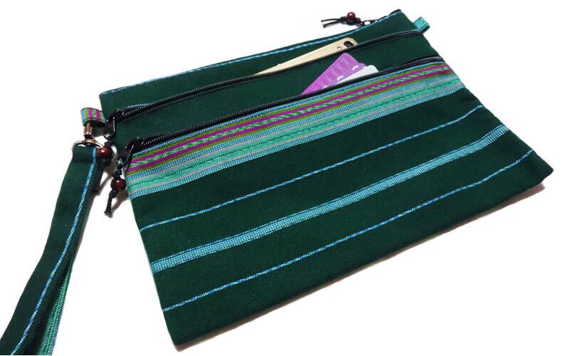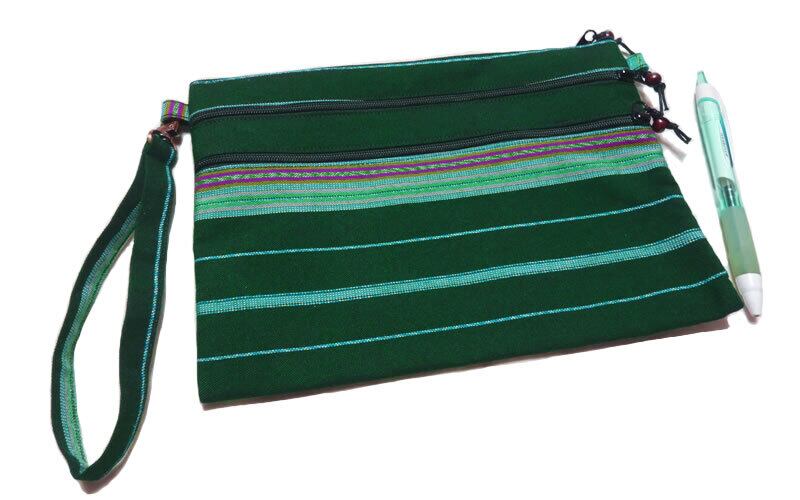 カレン族の手織り布をつかった3つファスナーポーチです。