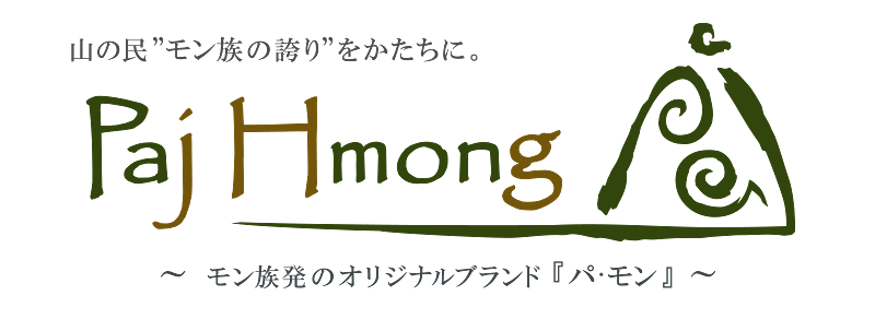 以上のことから、少し読みにくい綴りになっていますが、「Paj Ntaub Hmong(パ.ンダオ.モン)」を日本人にも呼びやすいように短く、『Paj Hmong(パ.モン)』というブランド名としました。